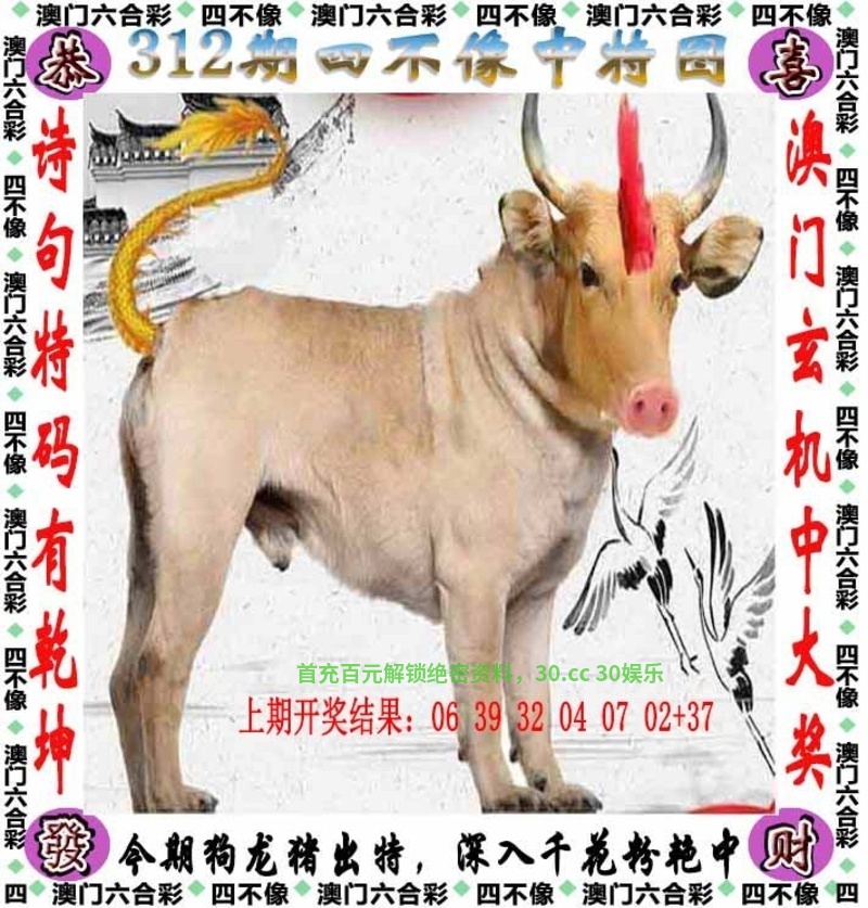 312期{今期狗龙猪出特,深入干花粉艳中}开龙14①杀:鼠虎蛇 ②图解特肖:狗龙猪牛鸡 ③合双+小数